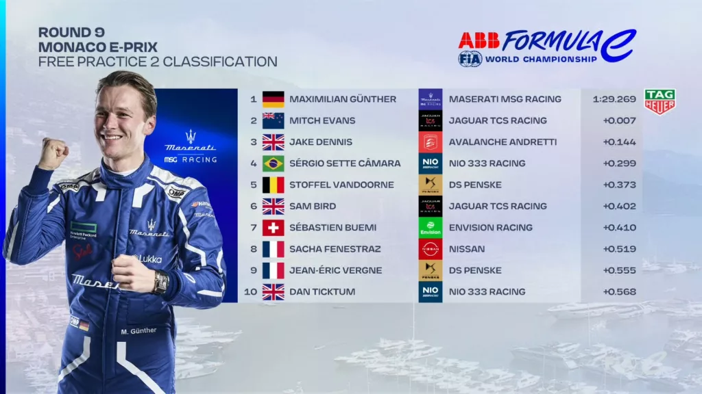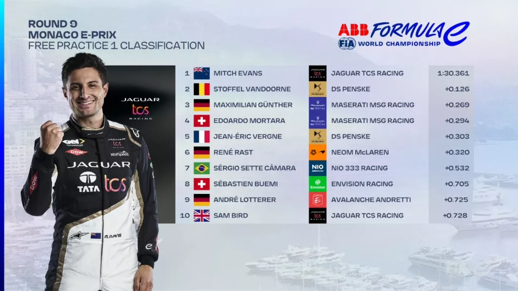 Mitch Evans (Jaguar) en Maximilian Günther (Maserati) zetten de snelste tijd neer tijdens de eerste en tweede vrije training in Monaco. Het tempo ligt alvast hoog onder de opkomende zon. Al lijken sommige rijders in het Prinsdom nog te moeten wennen aan het extra vermogen van de Gen3.