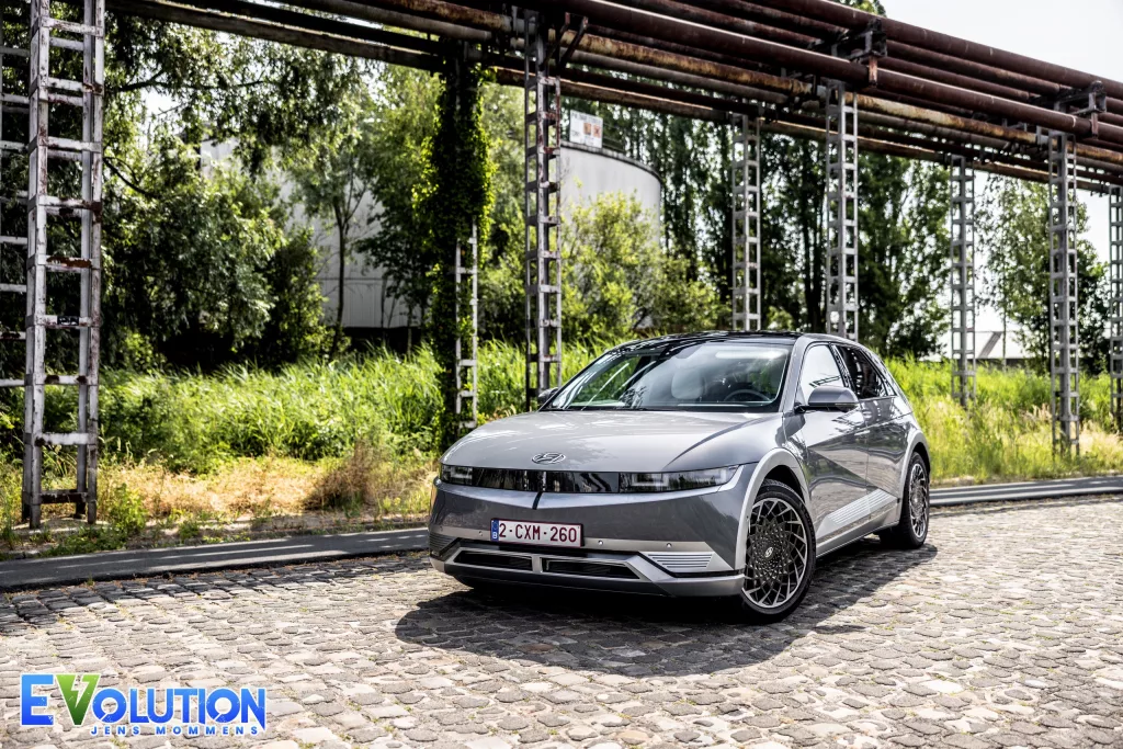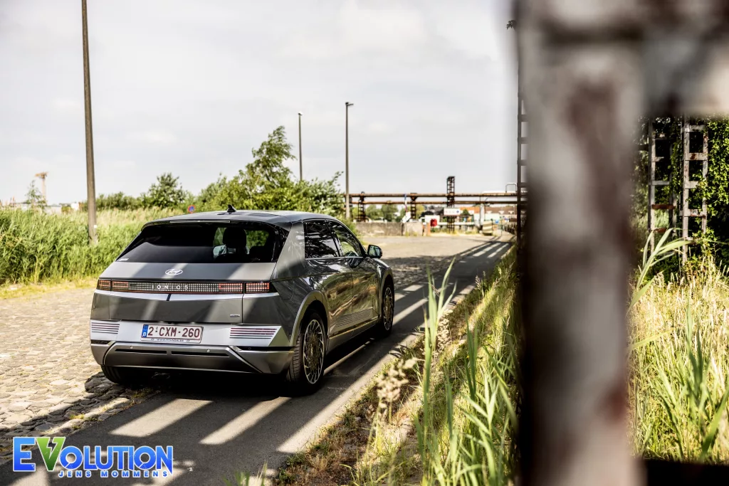 De batterij, die onderaan geplaatst is in het chassis, zorgt voor een laag zwaartepunt. Mede door de kruising tussen een hatchback en een SUV, die geen al te hoge wegligging heeft, rijdt de wagen verrassend stabiel en sportief. De 77 kWh accu, waarvan 74 kWh bruikbaar is, is trouwens ook zeer impressionant. Dankzij het 800 V platform kan de wagen tegen een snelheid van 233 kW (DC) of 1.010 km/u laden. En die laadsnelheid haalden we wel degelijk zelf aan een Ionity laadpunt. Waarden waar menig duurdere Duitsers alleen maar van kunnen dromen (knipoog naar Mercedes en BMW). Na een korte laadpauze van amper achttien minuten kan u met 80% in de batterij weer de baan op. De energie van deze batterij wordt rechtstreeks overgebracht op de twee elektromotoren die samen 325 pk en 605 Nm koppel leveren. Hyundai geeft een bereik van 460 km aan voor dit model, al lijkt dat volgens onze test eerder rond de 400 km te liggen. Dit met een gemiddeld verbruik van achttien kWh.