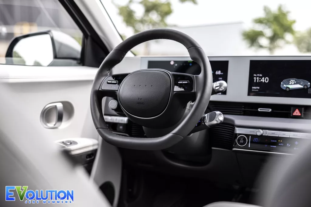 Aan de buitenkant ziet de wagen er retro uit, met zijn vierkante koplampen. Denk maar aan een hatchback uit de jaren 60, die een futuristische upgrade kreeg. Al is dit dan een uit de kluiten gewassen versie. Binnenin kan de wagen dan zo weer uit de toekomst komen. De IONIQ 5 oogt futuristisch en tegelijk minimalistisch. Vooral het witte interieur speelt hier een grote rol in. De voorzetels met verwarming en ventilatie zijn in acht verschillende manieren verstelbaar. Zelfs de stoel helemaal plat naar achter leggen voor een snelle powernap kan met één druk op de knop. In een normale stand hebben ook de passagiers op de achterbank meer dan voldoende hoofd- en beenruimte.