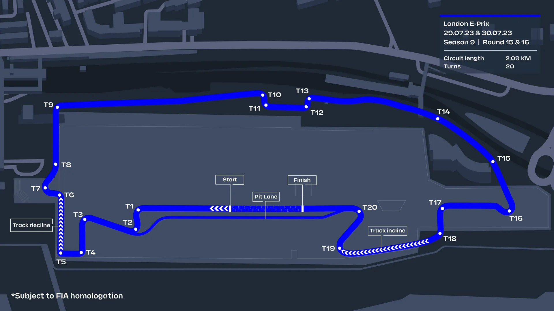 Het ExCel London Circuit is een unicum op de autosportkalender. Het circuit maakte in 2021, met een jaar vertraging door Covid, zijn intrede in het kampioenschap. Als enige kampioenschap bij de eenzitters wordt er zowel binnen en buiten geracet en dat levert altijd heel wat spektakel op. Voor de race van dit jaar wordt het circuit aangepast door werken rondom de London ExCel. De bochtige laatste deel voor de rijders naar het binnengedeelte gaan, wordt zo een stuk rechter. De bochtenreeks, waar traditioneel veel werd ingehaald, zal zo voor de nodige extra uitdagingen gaan zorgen. De race wordt op zaterdag en zondag verreden over 20 bochten, verdeeld over 2,09 km. Een ding is alvast zeker. Het wordt een uitdagend raceweekend voor de 11 teams en 22 rijders. Er wordt heel wat regen voorspeld in de Britse hoofdstad en dat maakt het er niet gemakkelijker op. De delen van het circuit die zich binnen situeren worden zo omgetoverd tot een schaatsbaan.