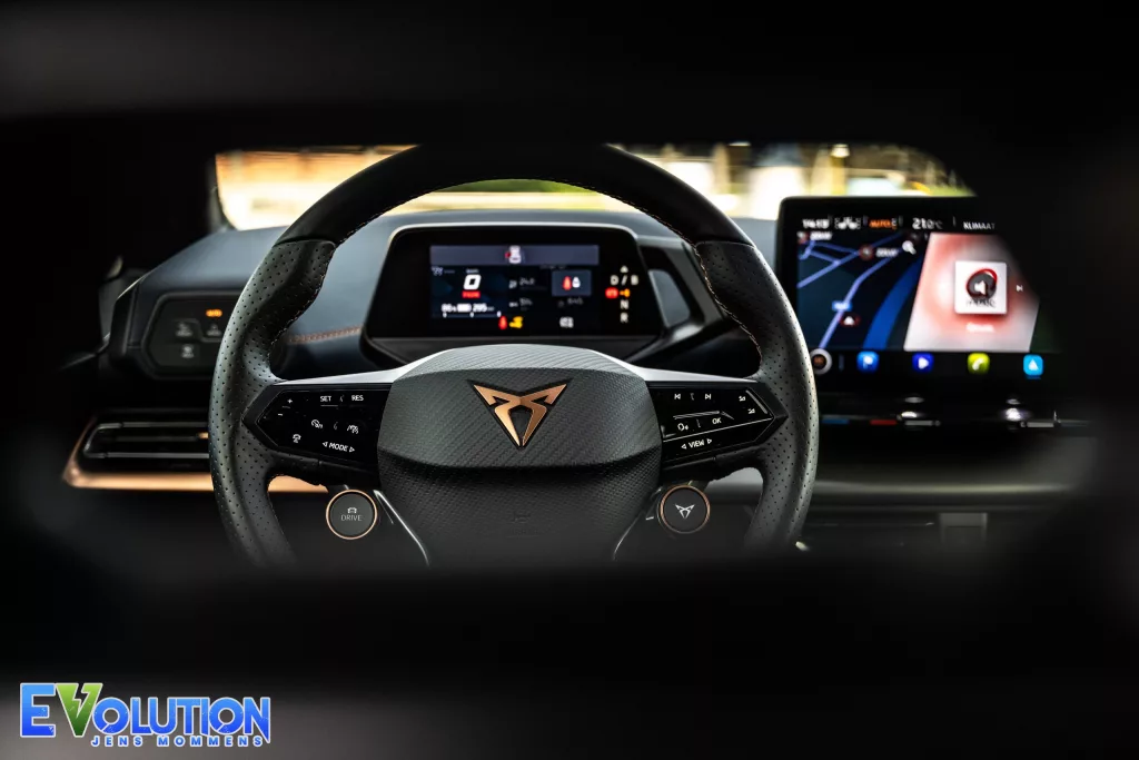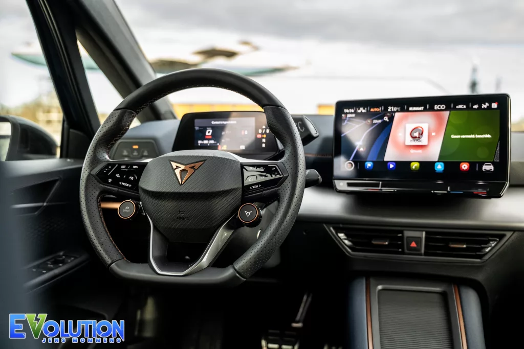 Helaas deelt de Cupra Born hetzelfde infotainmentsysteem als andere elektrische modellen binnen de VW Groep, en laat dat systeem nu net niet zo soepel werken als we zouden willen. Het systeem is traag en gedateerd en staat zo in schril contrast met de sportiviteit en vernieuwing die Cupra belichaamt. Bovendien zijn fysieke knoppen zo goed als afwezig in de wagen. Deze zijn vervangen door slecht werkende, niet verlichte aanraakgevoelige knoppen. De radio harder of stiller zetten bij nacht wordt zo zeer moeilijk gemaakt. Ook op het stuur vinden we deze touch-knoppen terug die niet al te accuraat werken.