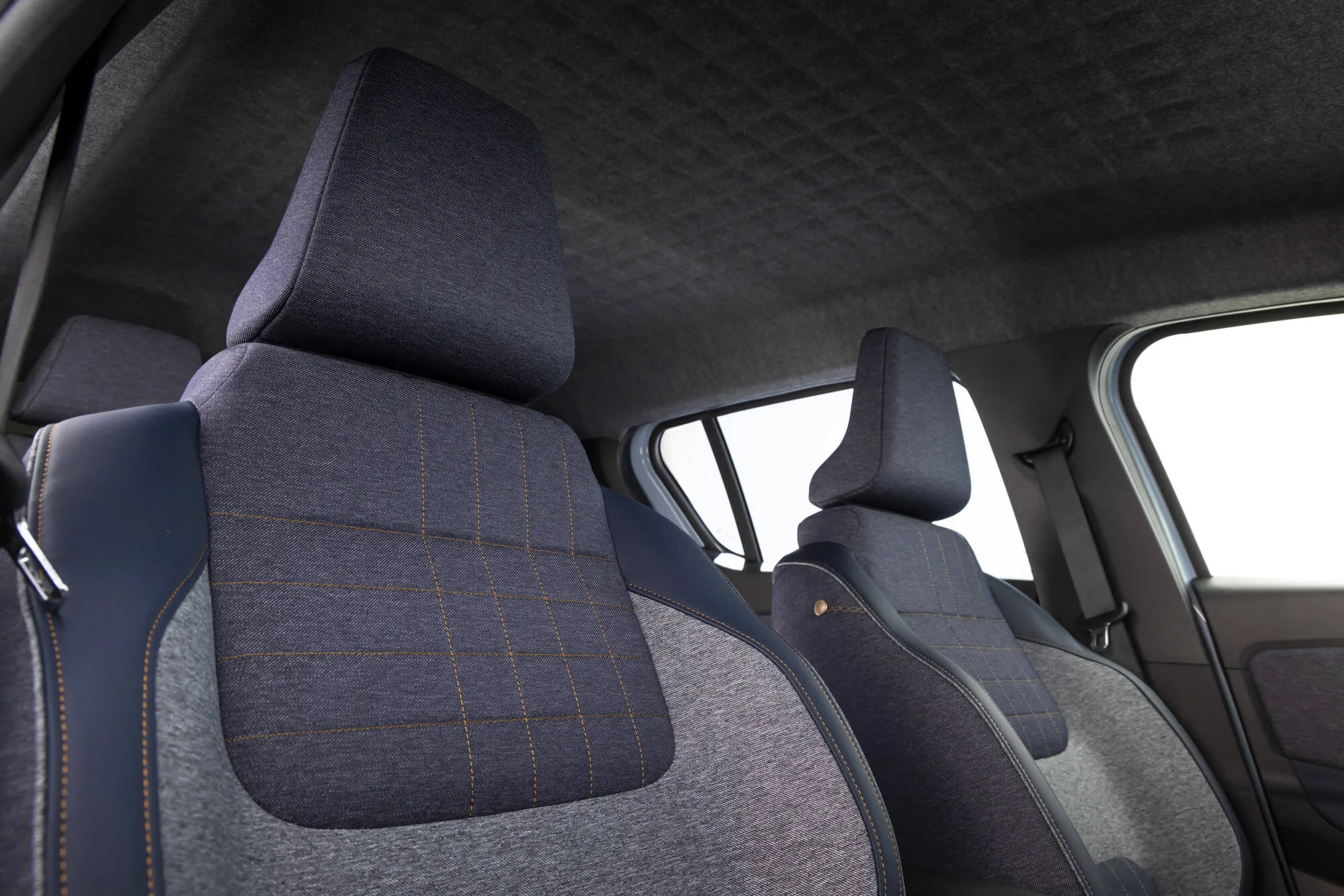 Ook binnenin wordt diezelfde lijn volledig doorgetrokken. Zo is hij standaard uitgevoerd met een geruit stoffen interieur dat zo uit de vorige eeuw lijkt te komen. Toch oogt alles best modern dankzij een groot infotainmentsysteem. Ook alle verplichte rijhulpsystemen zijn aanwezig, aangevuld met het Open R Link-systeem met Google Automotive integratie. Afhankelijk van de gekozen uitvoering (Evolution, Techno of Iconic) krijgt het interieur een ander kleurtje.